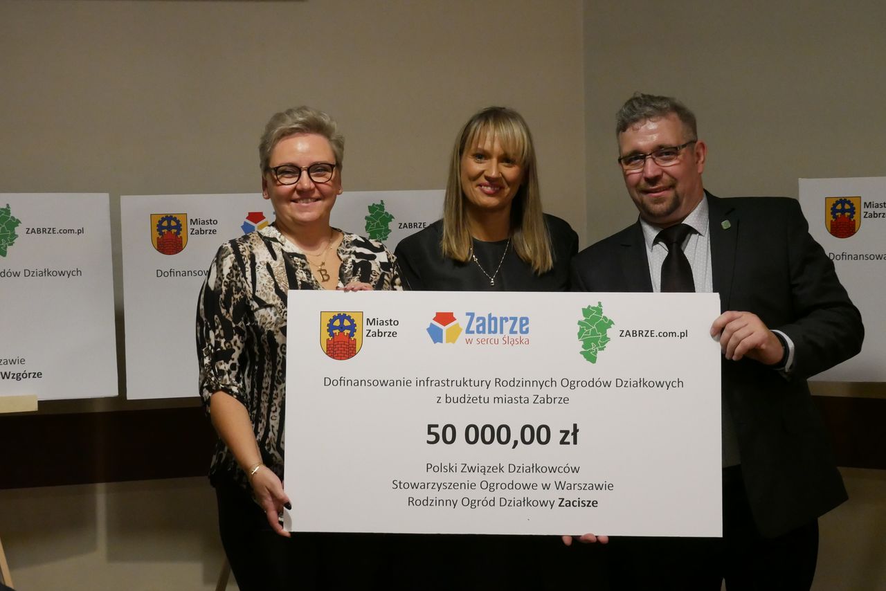 Podziękowano za wsparcie finansowe w wysokości 418 400,00 zł dla Zabrzańskich ogrodów co w znacznym stopniu wpłynie na poprawę infrastruktury ogrodowej. ROD Zacisze otrzymał dofinansowanie w wysokości 50 000 zł.