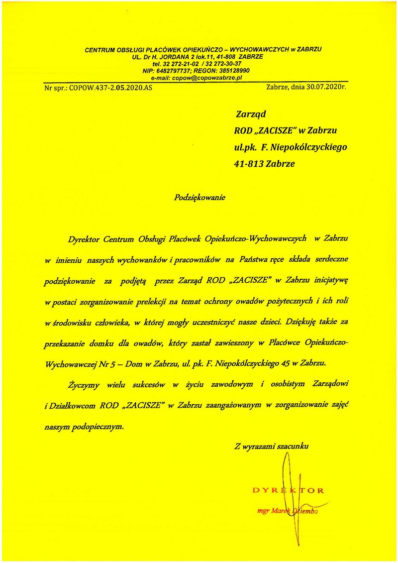 Zarząd ROD Zacisze dziękuje Pani Patrycji i Leszkowi z działki 89 za poświęcony czas w zrobieniu i przekazanie przez zarząd domku dla pożytecznych owadów dla dzieciaków. Równocześnie Zarząd ROD Zacisze zachęca do zakładania domków na ogrodach, aby chronić pożyteczne gatunki owadów występujących na obszarach rodzinnych ogrodów działkowych i tym samym przyczyniając się do ochrony walorów krajobrazu naszej przyrody.