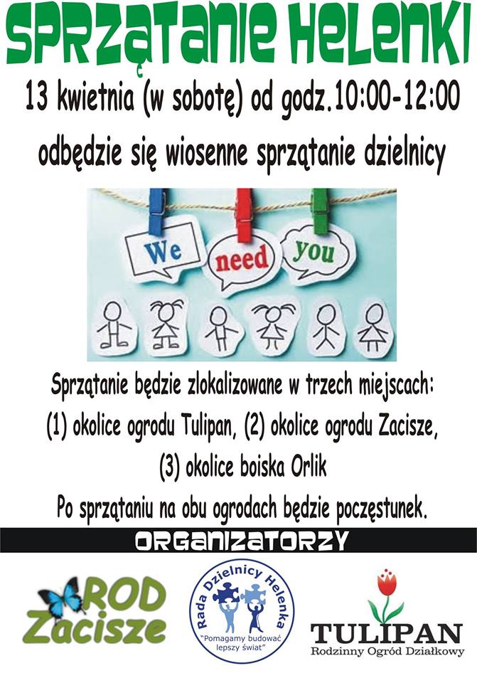 Zarząd ROD Zacisze dziękuje wszystkim osobom sprzątającym dzielnicę Helenka jak okolice terenów przyległych do ROD Zacisze i stawu. Zebrano ponad 40 worków śmieci oraz stare fotele, opony. Po uprzątnięciu części lasu przyległego do stawu został zorganizowany darmowy grill dla osób które wspomogły akcje sprzątanie Helenki.